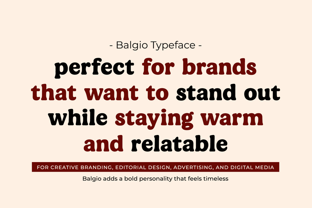 Balgio is a bold rounded slab serif font that merges modern softness with timeless strength. Designed with smooth terminals, sturdy serifs, and low contrast strokes, Balgio delivers a look that’s both confident and approachable, perfect for brands that want to stand out while staying warm and relatable.